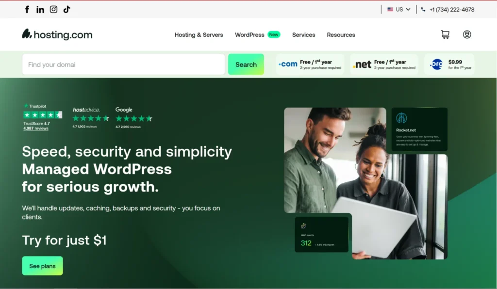 Hosting.com’s wide range of hosting types gives your agency flexibility to match client needs and budgets. Use traditional shared hosting for internal testing or demo instances.
